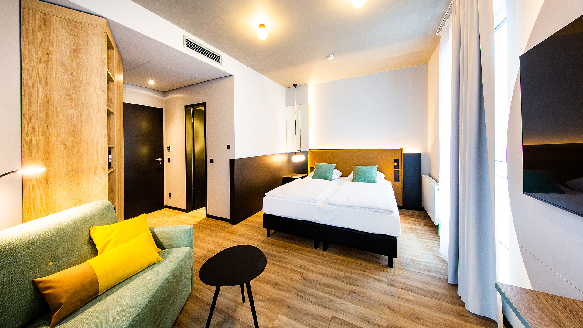 This new building is a hotel in the middle of the trendy district in Berlin Kreuzberg. From the 7th floor you have a wonderful view over the Park am Gleisdreieck. The artistically furnished hotel offers 190 rooms with a restaurant, lobby and event location in the basement.